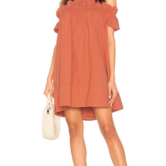 Free People Off-Shoulder Ruffle Mini Dress - Rust