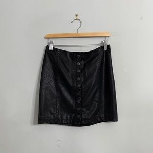 Free People "Oh Snap" Vegan Leather Button Front Mini Skirt