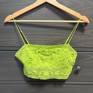 Stylish lime green crochet crop top. Perfect for summer outings. NWT Free People One - Lyra Bralette New With Tags Size Small Bright Green