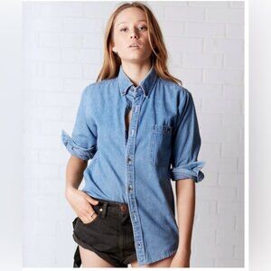 Free People One Teaspoon Denim Button Down Shirt Vintage Chambray medium Blue XS