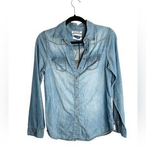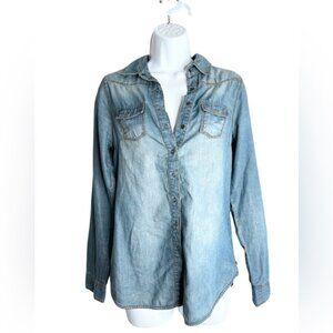 Free People One Teaspoon Denim Button Down Shirt Vintage Medium Wash Chambray