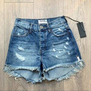 New Free People One Teaspoon Lucky Blue High Rise Waist Bonitas Distressed Denim Jean Shorts.