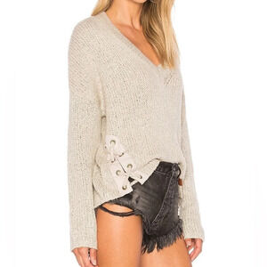 Free People One Teaspoon Saints and Roses Sweater Chunky Knit Lace Up V-neck