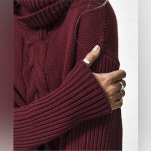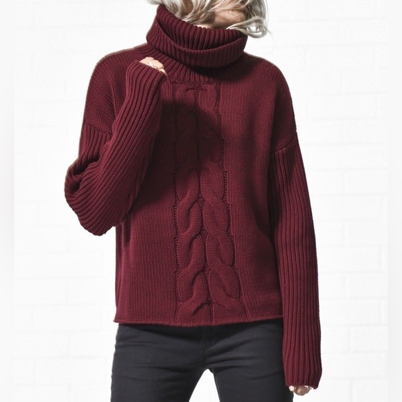 New One Teaspoon Bordeaux Love Society Roll Turtleneck Cable Knit Sweater.