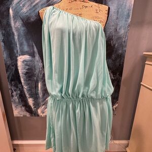 Elegant one-shoulder dress in a soft light blue color. Perfect for any occasion.