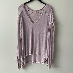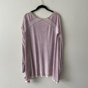 Free People Pacific Drippy Waffle Knit Thermal Tunic Plunging Top Purple Small