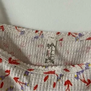 Stylish women's top featuring a cream base with a vibrant floral pattern.