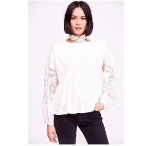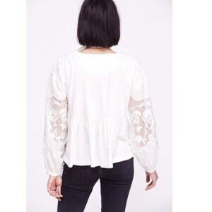 A gathered drop waist and embellished illusion sleeves give a folksy appeal to this fun-to-wear top.