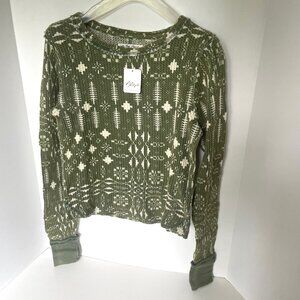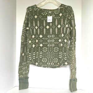 TAGS: Free People, Pretty Little Thermal, Floral Thermal, Green Waffle Knit, Long Sleeve Top, Boho Chic, Casual Everyday, Layering Piece, FP Thermal, Trendy Tops