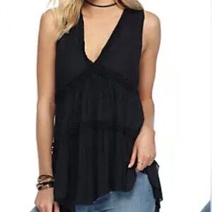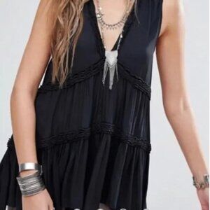 Free People Purple Haze Black Tunic Top Tiered Boho Babydoll Festival Sleeveless Hi Low ~ Size Small ~ 100% Polyester