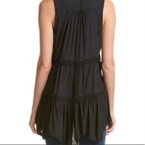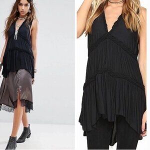 Free People Purple Haze Black Tunic Top Tiered Boho Babydoll Hi Low Small
