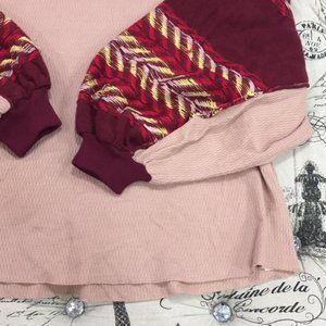 A colorful pattern and batwing sleeves add boho flair to this stylish knit pullover.