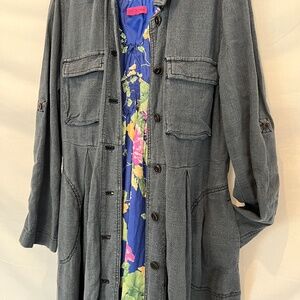 Free People - Rainz Cuffed Duster Jacket/Dress - Dark Indigo Blue - Oversized XS