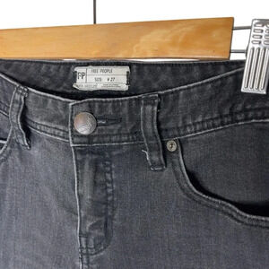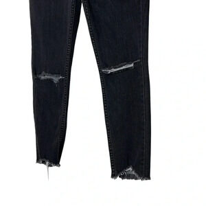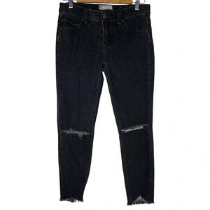 Free People Raw Fray Hem Skinny Ankle Distressed Knee Black Jeans Size 27