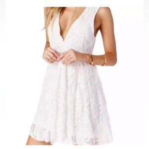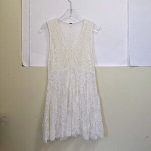 Free People Reign Over Me Lace Embroidered Sheer Cotton A Line V Neck Mini Dress Fairy