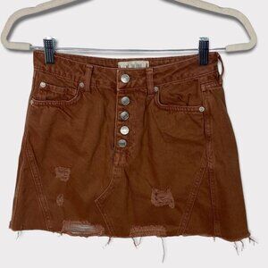 Free People Retro Brown Distressed Denim Mini Size Size 26 or Small Boho Button