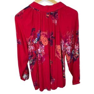Free People Meadow Lark Blouse in Red and Women's Size XS. From Revolve. 100% rayon. Front button closure. Buttoned sleeves. Machine washable. Very good pre-loved condition. No visible flaws.