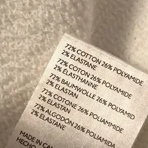 72% cotton, 26% nylon, 2% spandex