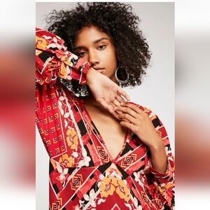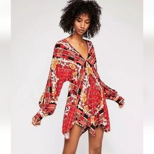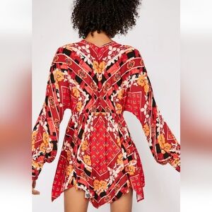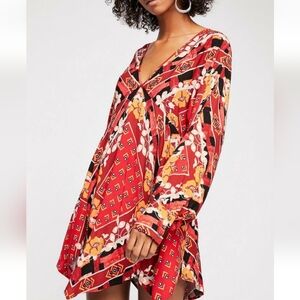 Free People Ride To the Sunset Floral Tunic Top Mini Dress - Med - Peasant Boho