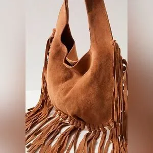 Brand new! Add a fun touch to any 'fit with this super cool bag featured in a soft suede fabrication with exaggerated fringe detailing at trim for dimension