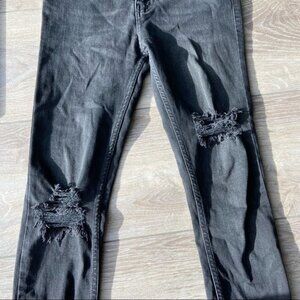 Free People Ripped Skinny Black Washed Jeans