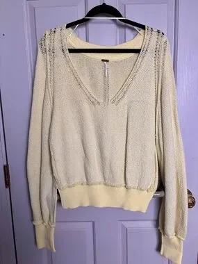 Soft V-neck pullover in a vibrant lemon shade. Relaxed fit with voluminous balloon sleeves. Lightweight textured knit for easy layering. Casual yet feminine silhouette for everyday wear.