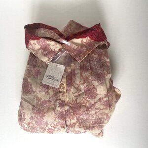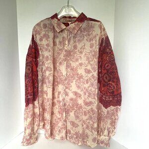 Free People Rose Bud Paisley Cotton Oversized Boho Blouse Red Cream Lightweight