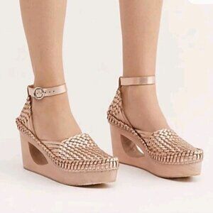 Free People Rose Gold Teagan Huarache Platform Clogs Womens Sz 7.5