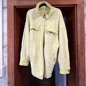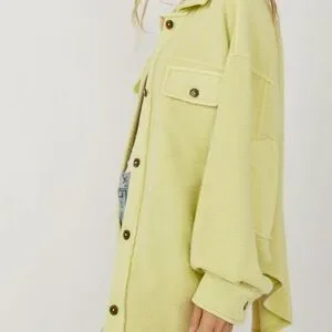 Cozy and chic teddy jacket. Features button-up front and chest pockets. Ideal for layering.