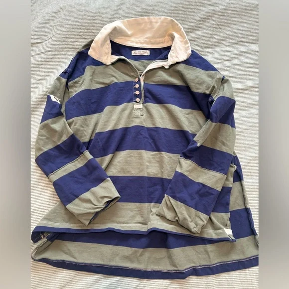 Green/blue striped rugby style shirt from Free People! Gently used, all buttons still attached.