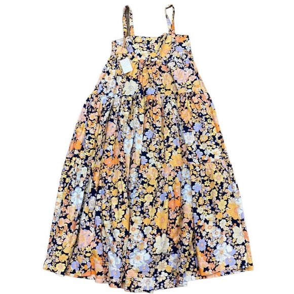Free People S Park Slope Floral Maxi Dress Dark Combo Cotton blue oversized New