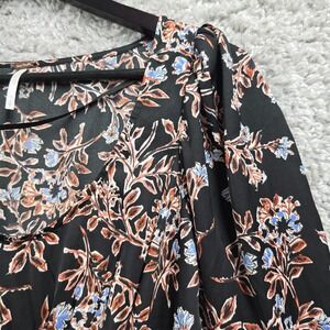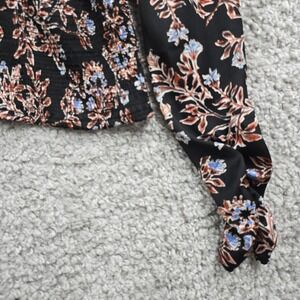 Condition: Excellent pre-owned condition with no flaws, rips, or stains. Smocked waist with puff sleeves and a dark floral print — flattering and versatile.