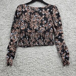 Free People Santiago Women Floral Smocked Top Size Small Long Sleeve Boho Grunge