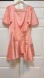 Features: Soft fabrication, deep V-neckline, short-sleeve style, buttons at side of waist, draped bottom skirt, seam detail throughout