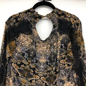 Free People Sepia Toned New World Jersey Nouveau flowy cross front Top size S