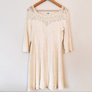Free People “Shake It Up” Lace 3/4 Sleeve Dress M
