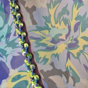 Black with blue, yellow and green floral pattern
