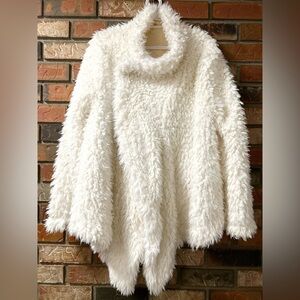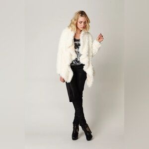Free People Simply Sherpa Ivory Faux Fur Shaggy Drape Coat L