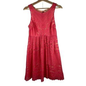 Free People Women Size 6 Coral Floral Lace Overlay Sleeveless Summer Tank Dress. Pre-owned in excellent condition, no visible flaws noted.