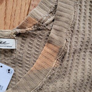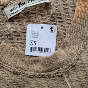 Free People Size XS New Magic Thermal Tee Golden Olive FLAWS Upcycle Bleach