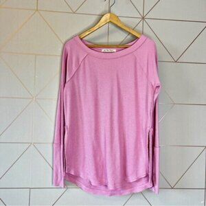 Free People Snowy Thermal Top Mink Tink Pink in excellent pre worn condition. You'll always be weekend ready with the Free People Snowy Thermal. The waffle-knit fabrication offers easy laid-back wear while offering lightweight warmth. The oversized thermal features a bateau neckline and long sleeves. Curved hemline with exaggerated side slits. Please see all photos.
