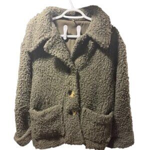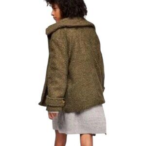 Fuzzy fleece makes this peacoat a cozy-chic take on cold-weather style.