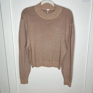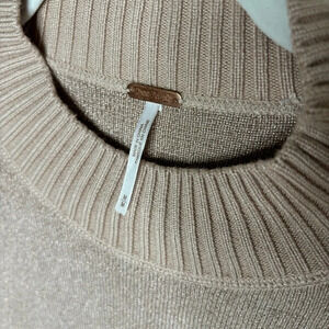 Free People Starry Night Shimmer Sweater Pullover Cream Metallic Holiday Party M