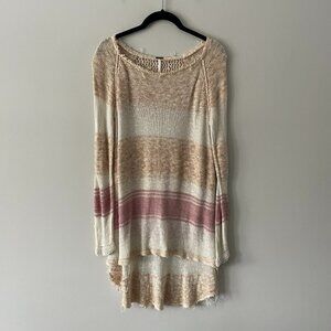 Free People Striped Distressed Knit High Low Hem Mini Sweater Tunic Cream Small