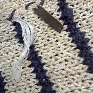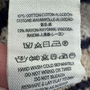 Stay cozy and stylish with this striped open-front sweater. Perfect for layering, this cream and navy sweater adds a touch of elegance to any outfit.