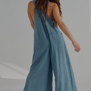 Never worn, new with tags, beautiful Free People linen romper, fits slightly oversized (medium). Color as shown in photos.