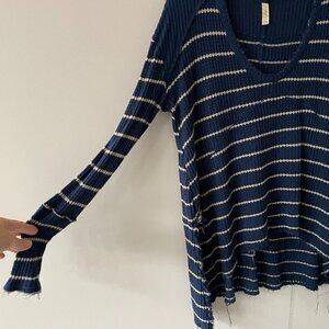 Free People Sunset Park Striped V-Neck Long Sleeve Casual Tunic Top Blue XS : Used and in good used condition 0211