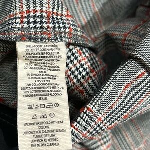 Chic plaid pants with black and red pattern. Features a comfortable waistband.