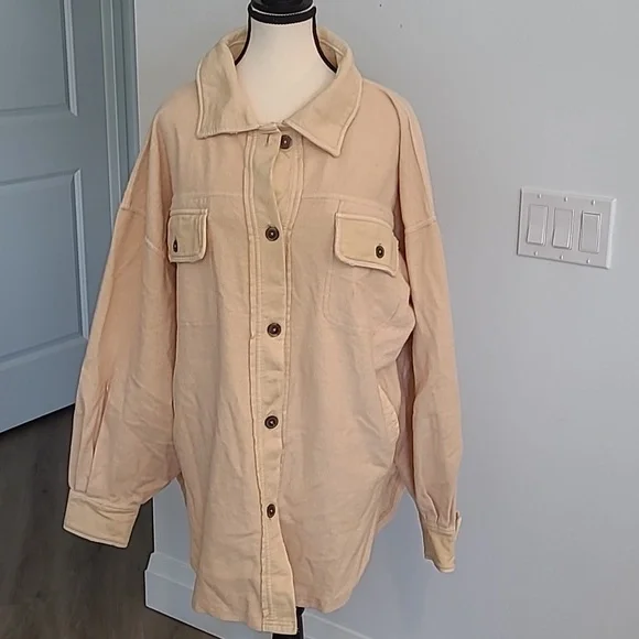 Stylish button-up jacket. Features front pockets. Relaxed fit with a classic collar.