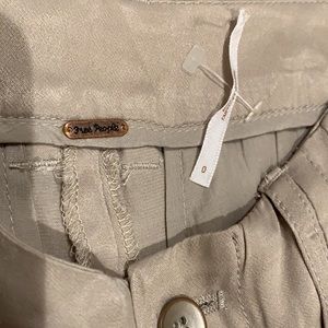 VGUC Free People tan high waisted straight legged cargo pants with slit pockets in women’s size 0.